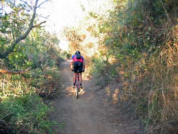 From there, the fireroad ascent up the West Ridge is moderate and fairly constant (with only one short downhill section) to the summit of San Vicente Mountain. For out-and-backers, note that several short singletracks parallel the ridge fireroad and offer snippets of downhill technical thrills for those needing a quick singletrack fix.