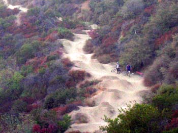 Location: Brentwood, CAShort fire road climb but some steep spurts get the heart going... The Kenter Coaster whoop-de-doo trail is as challenging as you want to make it... if you decide to go for it, make sure you clear the big gap. Coming up short is not an option.
