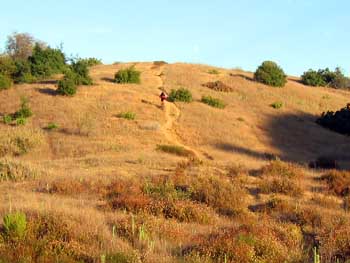 Halfway along the Cheeseboro Canyon Trail, I saw a guy fiddling with his Camelback. As he blazed by me, he said he'd dumped half his water by accident. I saw him blazing back home 15 minutes later. Water equals survival in Cheeseboro.