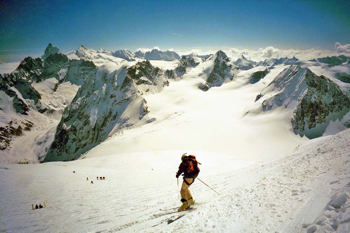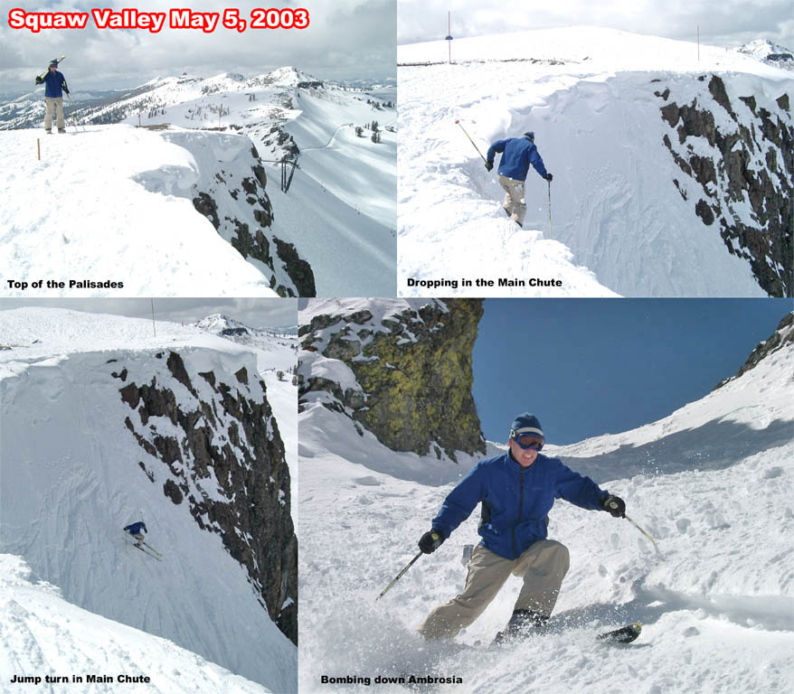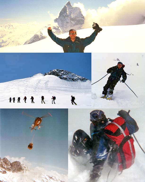 Apr 1996: Tuckerman's Ravine, NH Bottom of the headwall: Scott, Adrian Hinman, Josh Zwick Apr 2001: Squaw Valley, CA Todd Rose skiing as the Easter Bunny Apr 2001: Squaw Valley, CA Air Bunny May 2003: Squaw Valley, CA "I am away from my desk, please leave a message." Mar 2003: Breckenridge, CO Austin Conner cresting Peak 8 Colorado's "Storm of the Century" May 2003: Mt. Shasta, CA Sunrise on East Face Apr 2002: Haute Route, French Alps Scott climbing a pass Apr 2002: Haute Route, Swiss Alps Todd Rose Haute Route collage Apr 2002: Haute Route, Swiss Alps Traversing underneath Rosablanche Apr 2002: Haute Route, Swiss Alps Scott cruises down Pigne d'Arolla Matterhorn in the distance Jan 2001: Squaw Valley, CA Powder on Granite Chief One of many huge dumps in a great season Mar 2000: Wasatch Range, UT Willie prepares to drop in Apr 2002: Alpine Meadows, CA Willie eats the corn 2002: Willie & Jeremy crash collage Mar 2004: Lake Louise, Alberta Scott mid-huck Feb 2005: Superman "hits" a rail