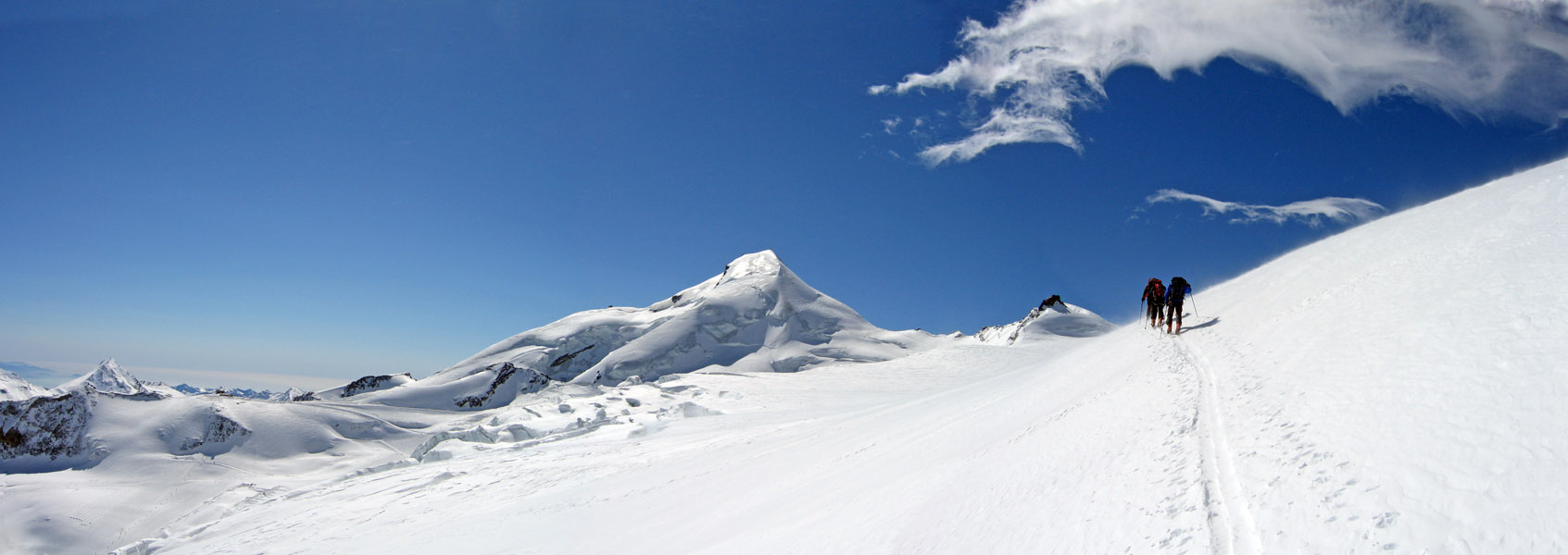 Zermatt & Saas Fee 4000ers The greatest concentration of 4000m peaks in the Alps. Multiple hut-to-hut itineraries and day tour options make this one of the most versatile ski touring destinations. Views of Monte Rosa and the Matterhorn at every turn. Huge ski descents. Italian refuges with rivers of wine. And, of course, Swiss huts with mounds of rosti. A must-ski destination.